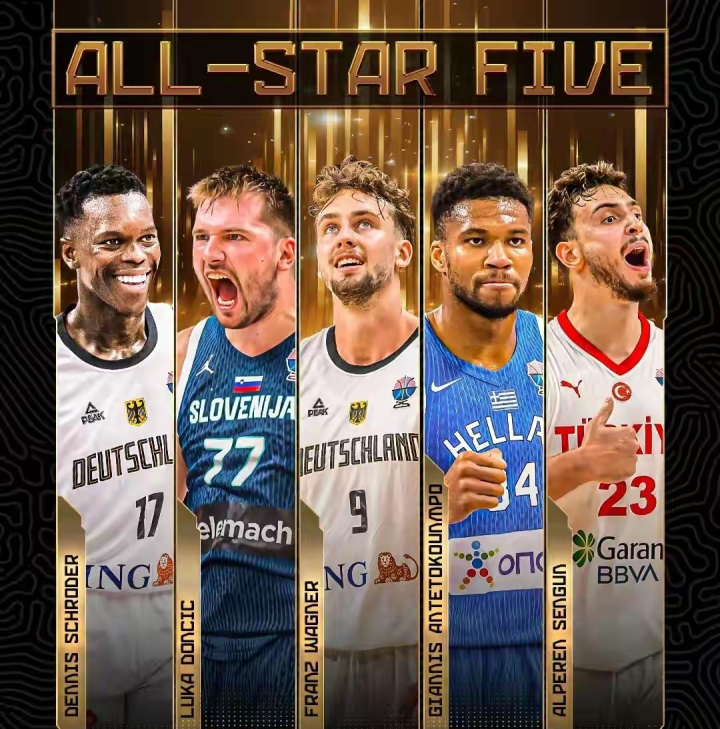 施罗德与东契奇、弗兰茨 - 瓦格纳、字母哥以及申京一起入选了赛事的最佳阵容。其实,本届欧锦赛最佳阵容的其他球员也都有着耀眼的表现。小瓦格纳在德国队中一直是稳定的得分点和防守核心,场均能拿到22分,他的全能身手和高效得分能力,成为了德国队晋级的关键。申京在土耳其队的表现堪称惊艳,小组赛带领球队取得5胜0负的战绩,场均贡献20.8分11个篮板和7次助攻,其中篮板位列所有球员第二,助攻则排在第三位 ,投篮命中率高居榜首,场均得分位列第3,是土耳其队内线的绝对核心。