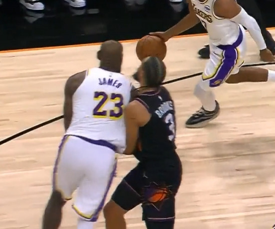 而詹姆斯所指在采访中所提及的上半场回合是在次节3分30秒。该回合詹姆斯挡拆后空切连续撞击狄龙,最后将其顶翻在地,但詹姆斯仅被吹罚掩护犯规!