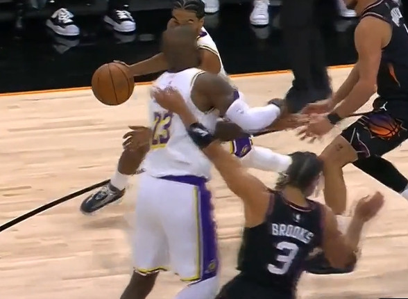直播吧12月16日讯昨日,NBA常规赛,湖人116-114险胜太阳。比赛最后时刻,狄龙·布鲁克斯命中反超三分后不满被詹姆斯扑倒,起身与詹姆斯对撞吃T,累积两T被驱逐出场。